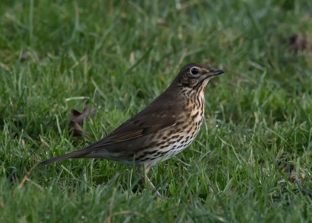 Thrushes are quite large songbirds with speckled breasts. There are a few varieties, with mistle thrushes being the largest, but they all have similar patterns and colouring. They can be commonly spotted hunting for snails and will use rocks to break the snail’s shells.