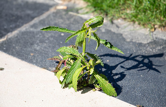 Hard surface weeds could appear anywhere, but you’ll most likely see them around the edges of your surfaces, or appearing in any existing cracks and between any tiles or slabs. It’s best to keep an extra eye on these areas so the weeds can be removed and controlled before they grow bigger, which is when they could start causing damage.